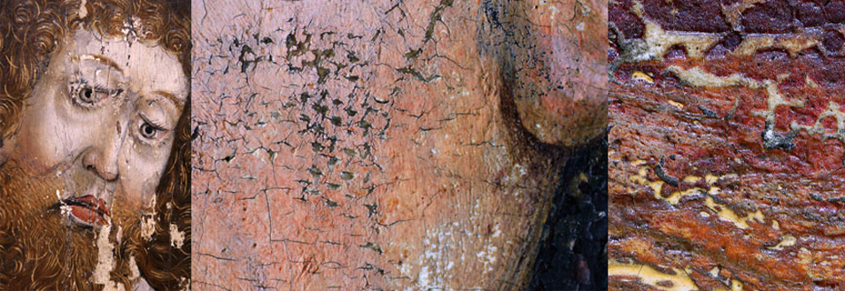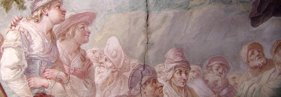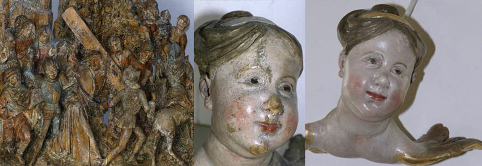 Restaurierung und Konservierung von: Staffeleimalerei, Wandmalerei (innen und aussen), Architekturoberflächen, Skulpturen mit Fassung, Gemälde, polychromen Objekten sowie Untersuchung, Anamnese der Schäden, Befunduntersuchung und Dokumentationen in Schrift und Bild, Beratung und Konzepterstellung, Instandsetzung und Pflege von Kunstobjekten und Bauwerken. Zu unseren Auftraggebern zählen neben Privatkunden vor allem Bauämter, Diözesen und Architekten. Restaurierungsarbeiten an beweglichen Objekten führen wir im eigenen Atelier durch.